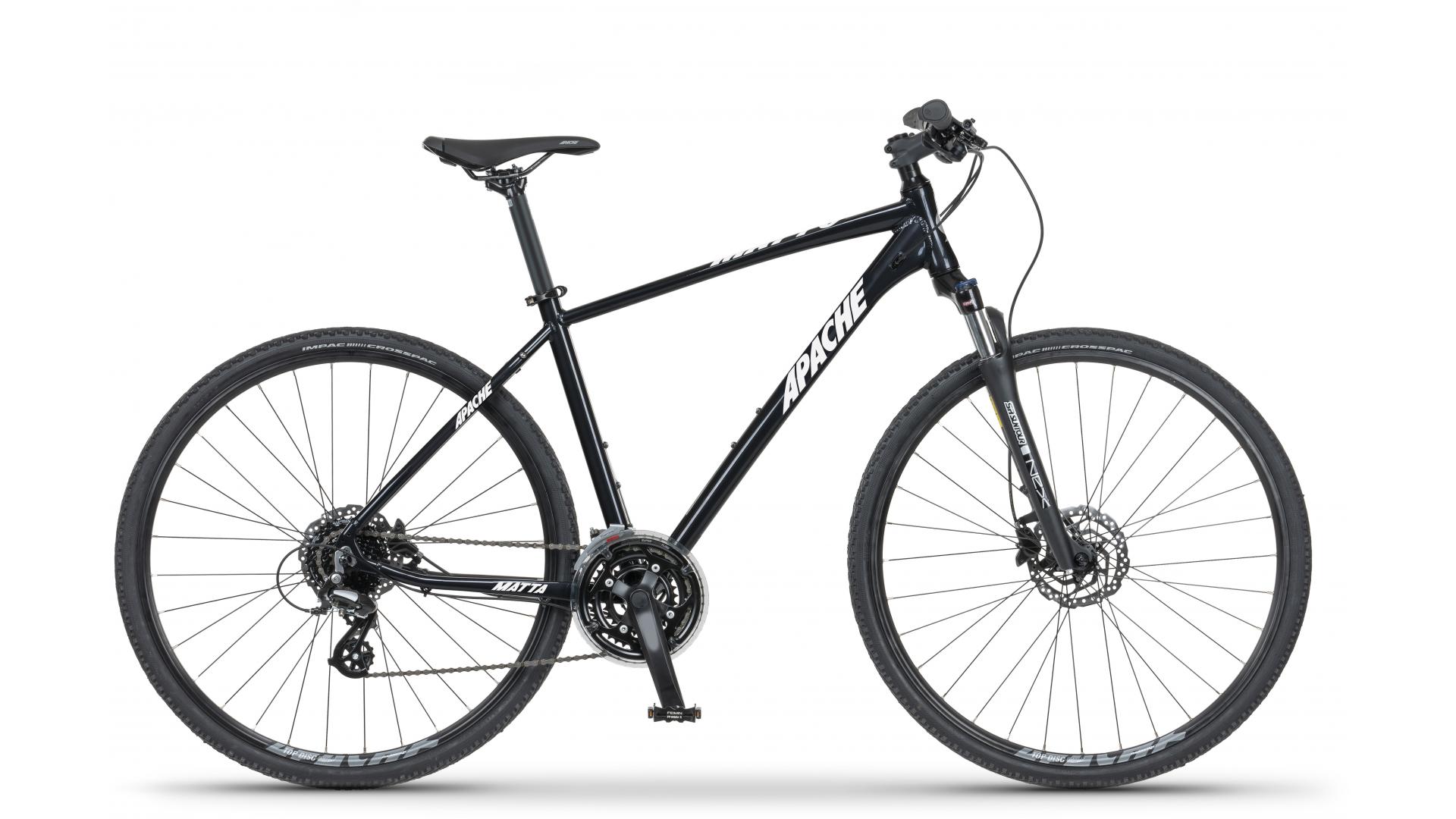 Apache Matto A1 je krosové kolo s hlinikovým rámem, koly o průměru 28 palců, odpruženou vidlicí a pohonem 3×9.