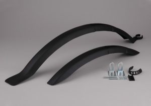 určeno pro 26″ a 27,5″ kola, lze použít pro kola s V-brake, také na oválnou sedlovou trubku ( 25 – 36 mm), zajištění gumičkou, šířka blatníků 60mm, délka 790 mm, hmotnost 314g